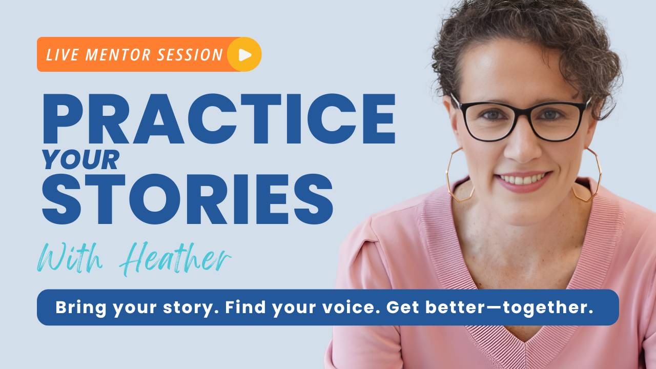 Introducing Practice Your Stories, a brand-new free live session inside the Storyworthy Academy led by Heather Daly, Storyworthy Mentor & Coach.